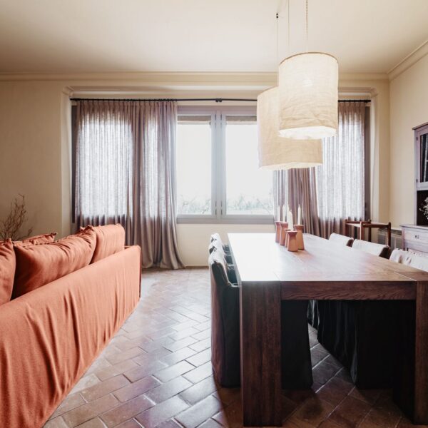 Our proposal maintains all the original elements of the rooms, ceilings, floors, doors… giving it a new general color tone that brings brightness and modernity. We have furnished the spaces with contemporary furniture but with a touch of the past where some of the original elements of the family coexist in harmony with those we have incorporated.