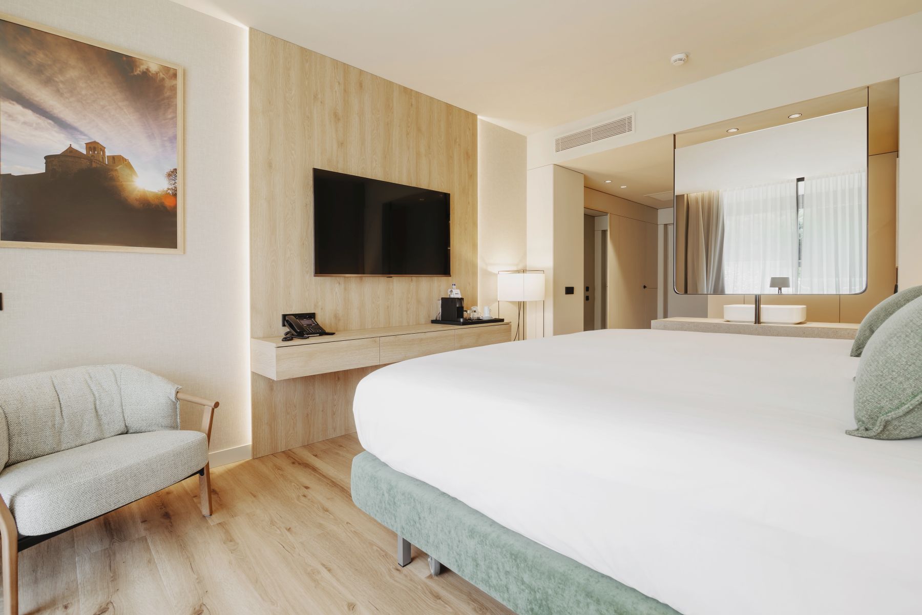 En este proyecto hemos diseñado tres habitaciones superiores exclusivas ubicadas en la planta jardín del Hotel Món en Sant Benet de Bages.