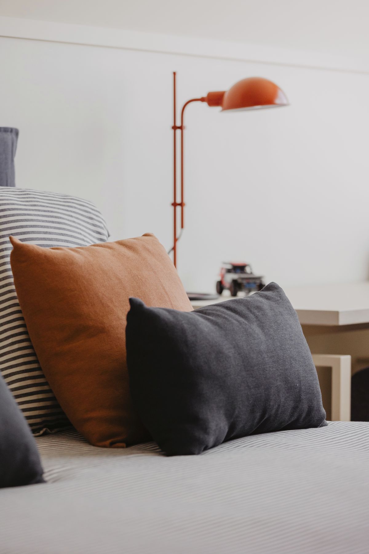 El sofá fabricado a medida facilita la colocación de un elemento grande en un espacio complejo que permite dotar de espacio para el descanso a cada uno de los miembros de la familia.