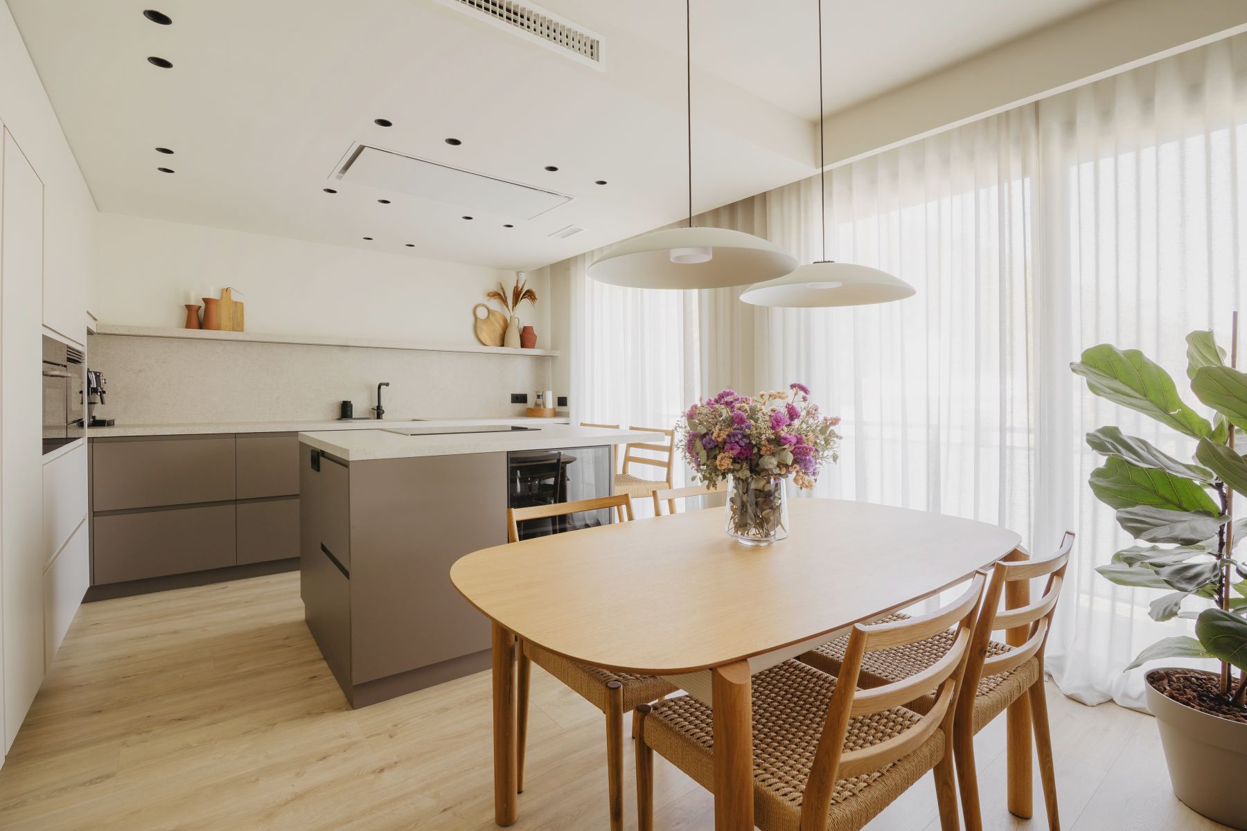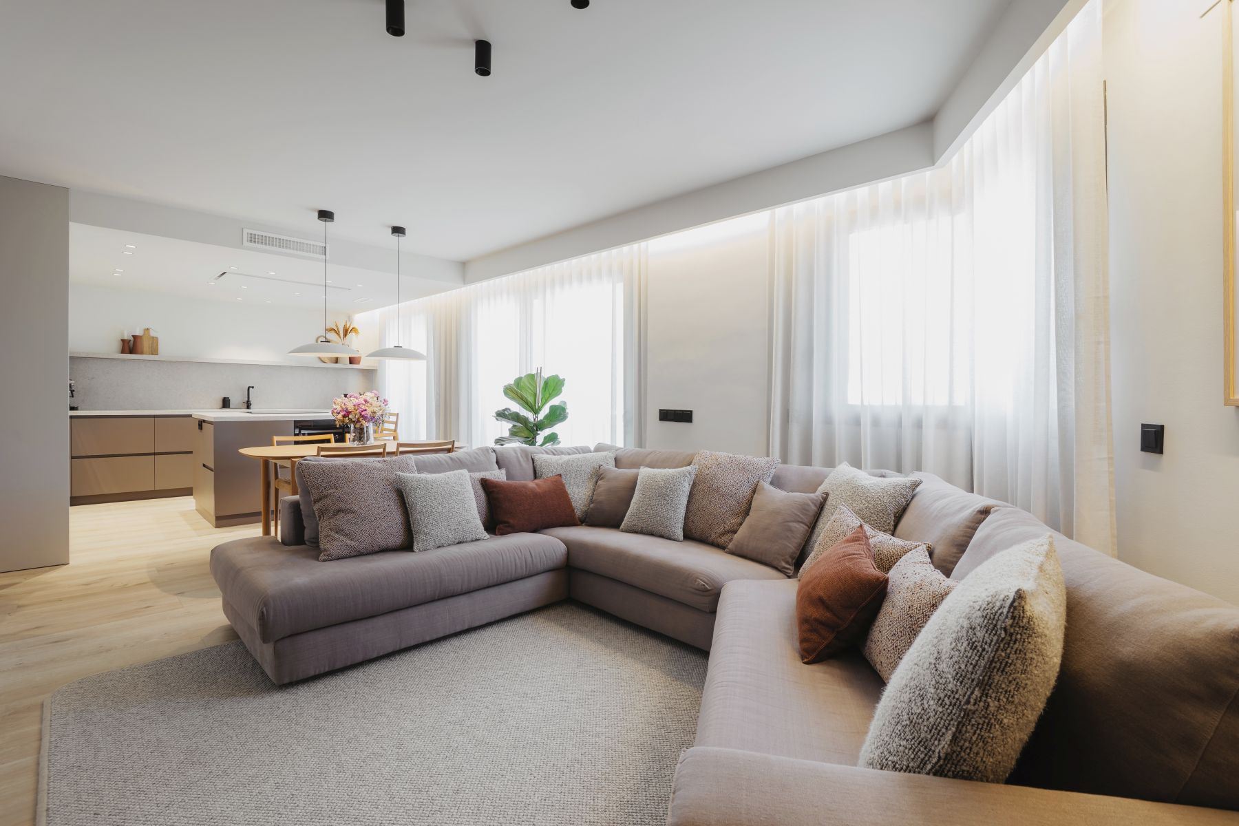 En este proyecto de reforma integral de un dúplex ubicado en Sant Joan de Vilatorrada teníamos el reto de transformar la vivienda en un espacio amplio para compartir y disfrutar en familia, donde todos tengan su espacio personal y uno común para disfrutar en familia, nuestra propuesta fue integrar la cocina en la sala de estar y camuflar la escalera de acceso al dúplex.