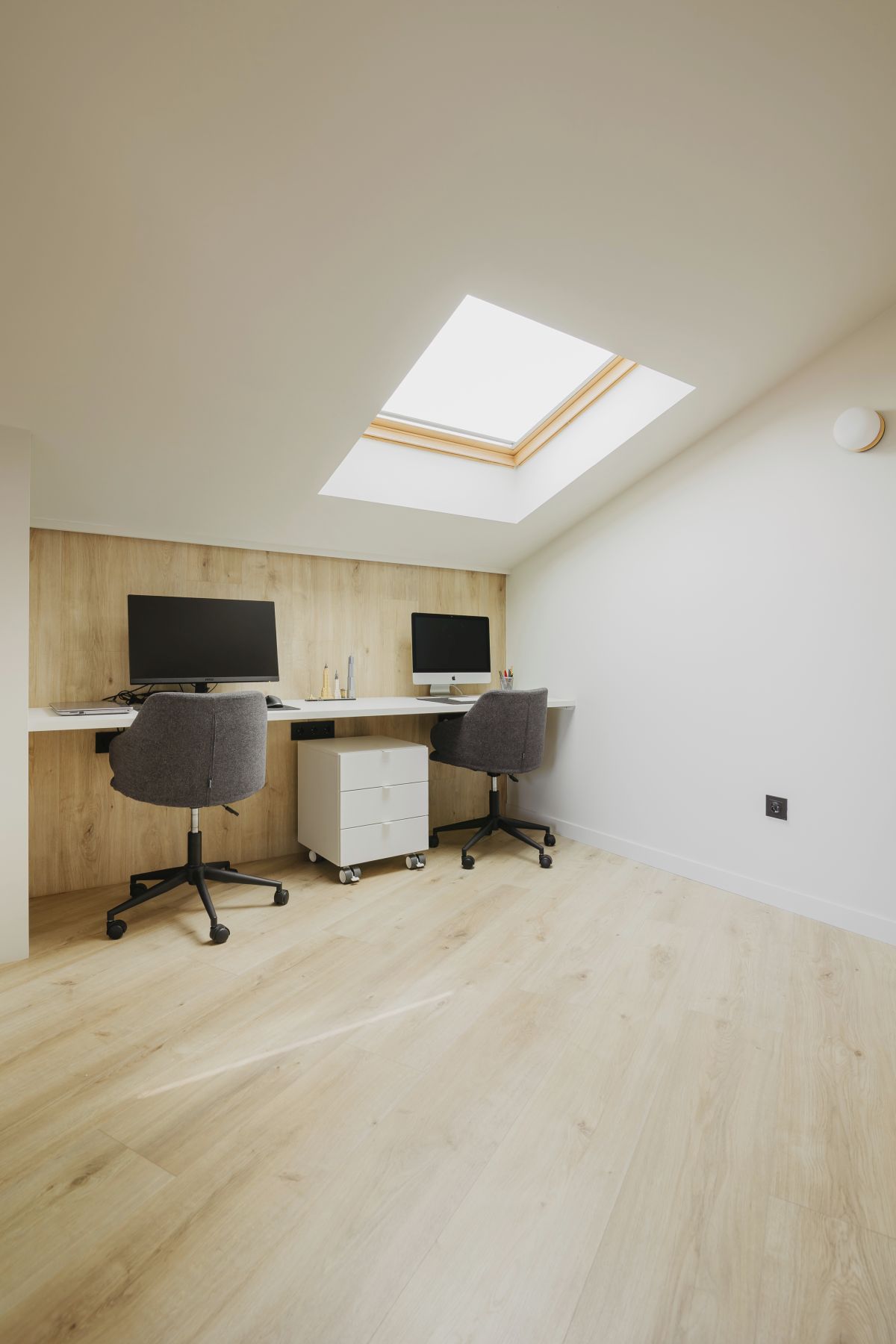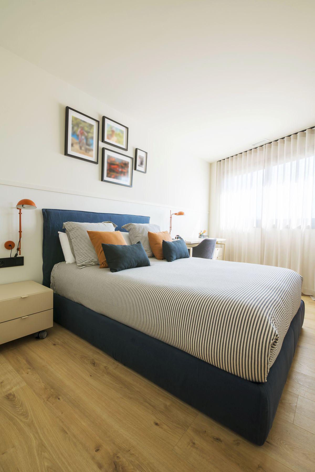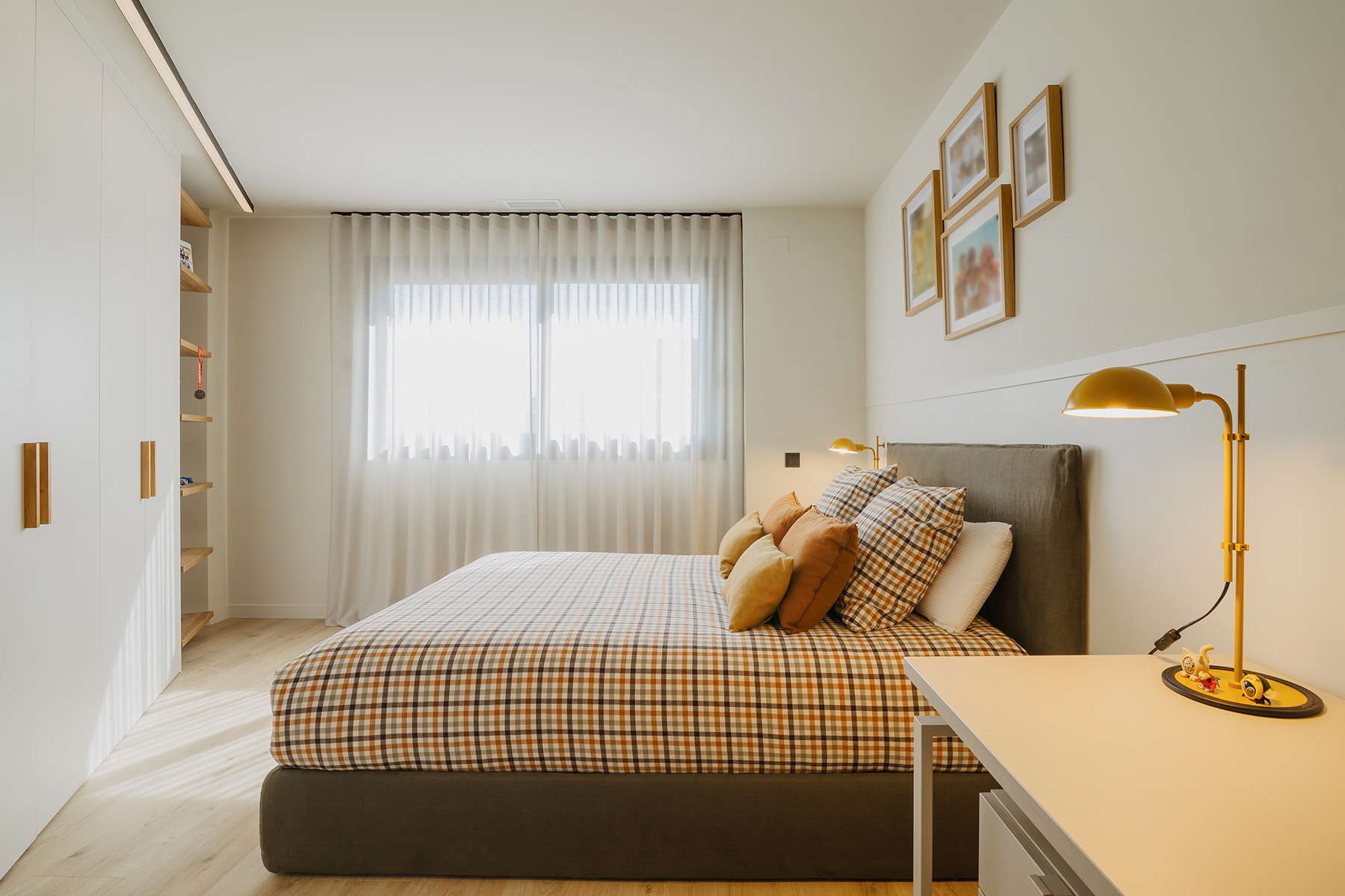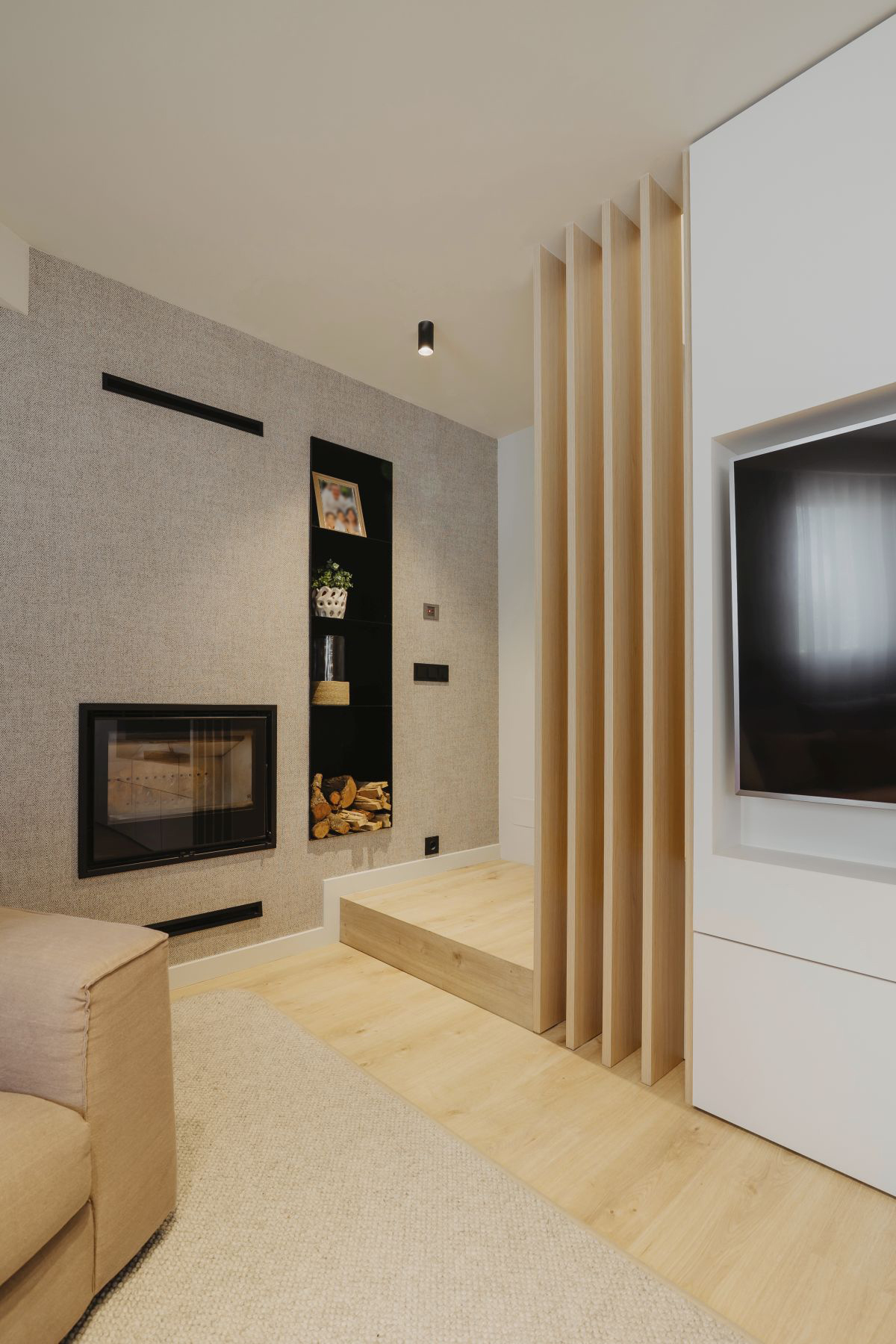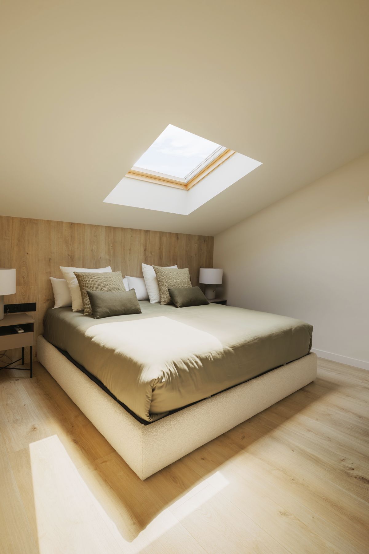 Para conseguir esta sensación de espacio trabajamos con colores claros con un toque de madera que le aporta la calidez natural del material, también se instaló una chimenea y dotó de los dormitorios del espacio para el descanso, trabajo y almacenamiento necesarios.